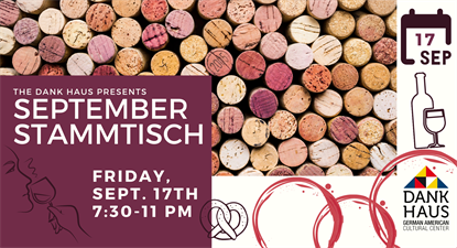 We are so excited to be back in the Haus for another Stammtisch! Join us on Friday, September 17th at 7:30pm for a Stammtisch open house event! Our September Stammtisch will feature delicious food, drink, and snacks for purchase!