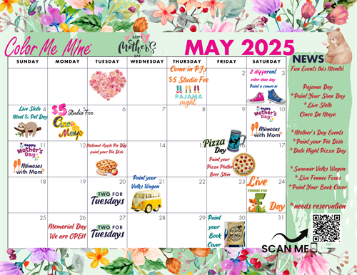 Color Me Mine is a paint your own pottery studio. You choose from a variety of pottery pieces to paint & we glaze, fire & have the finished piece ready for you.